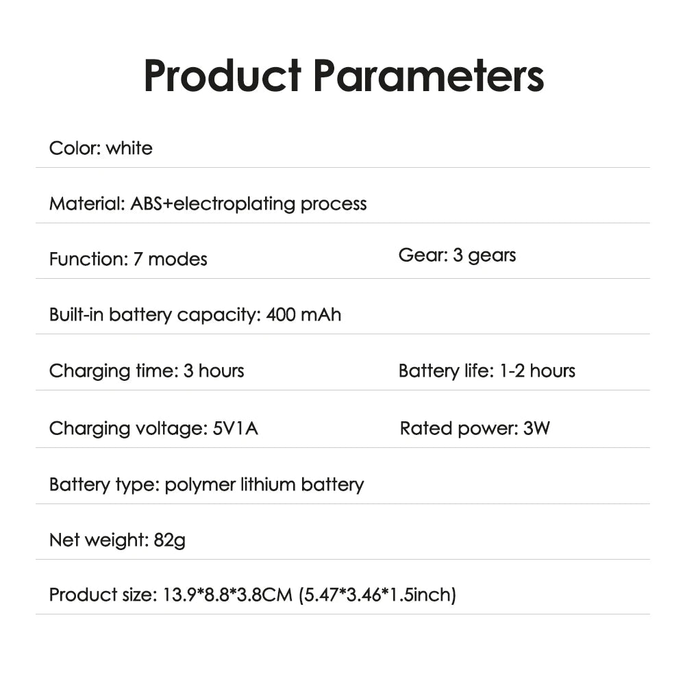 Power Source: Rechargeable Battery,USB Charger