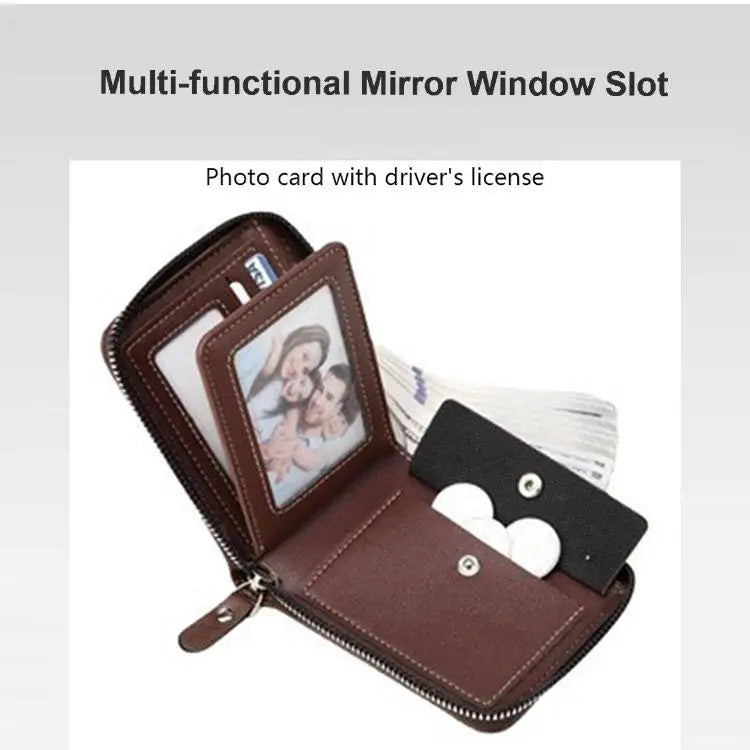 Men’s PU Waxed Oil Leather Wallet – Short Bifold Coin Purse with All-Around Zipper for Cash & Cards